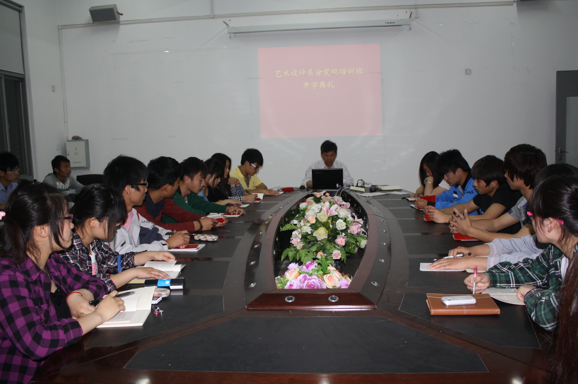 2012年5月10日晚7点,,艺术设计系分党校入党积极分子培训班开班仪式在系310会议室举行,系党总支书记林元宏同志为22名学员做了开班动员,强调了参加此次党课培训班的必要性和重要意义,希望学员们在此次培训中好好学习党课知识,争当优秀学员,并早日加入到党组织中来。
