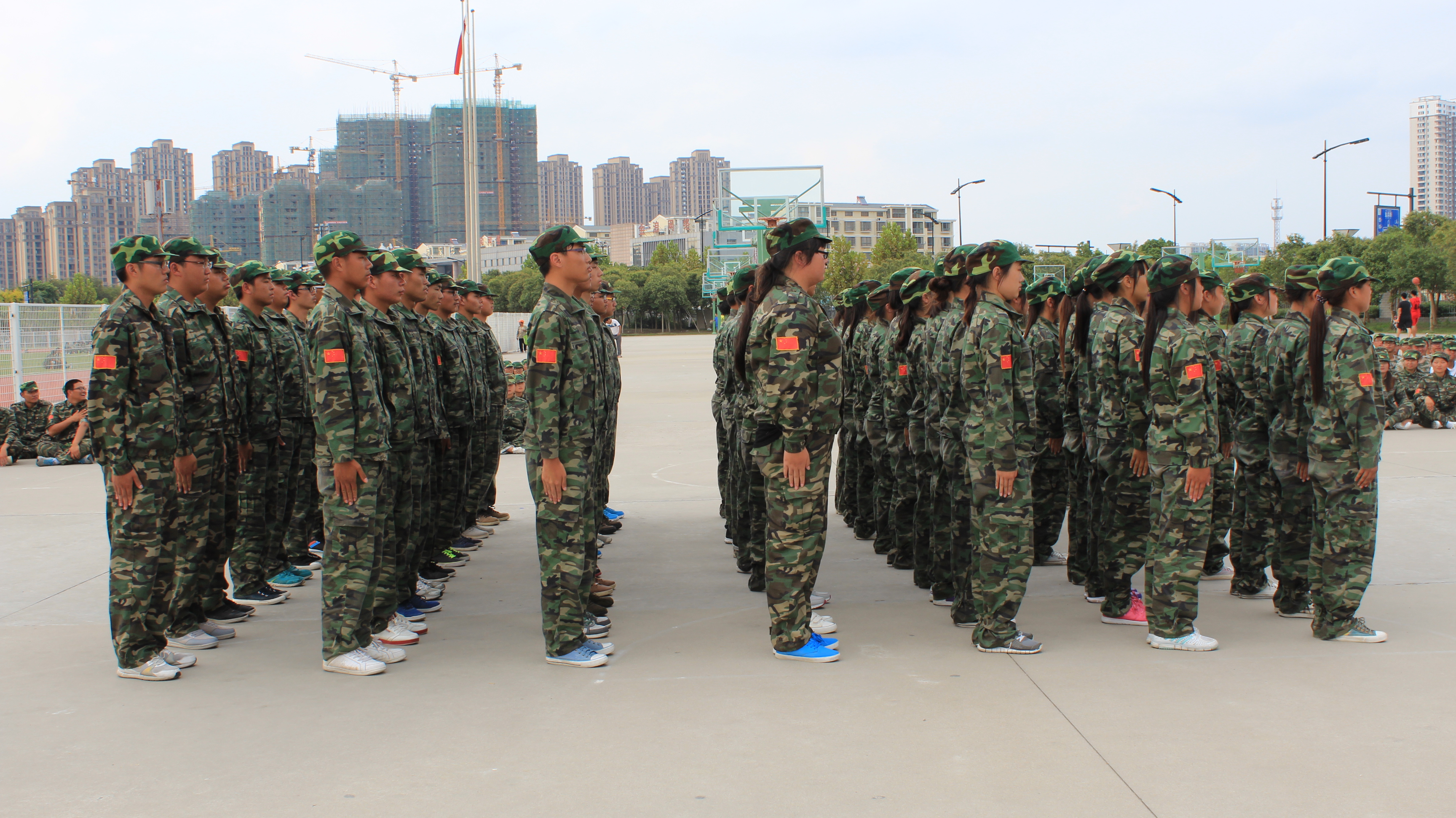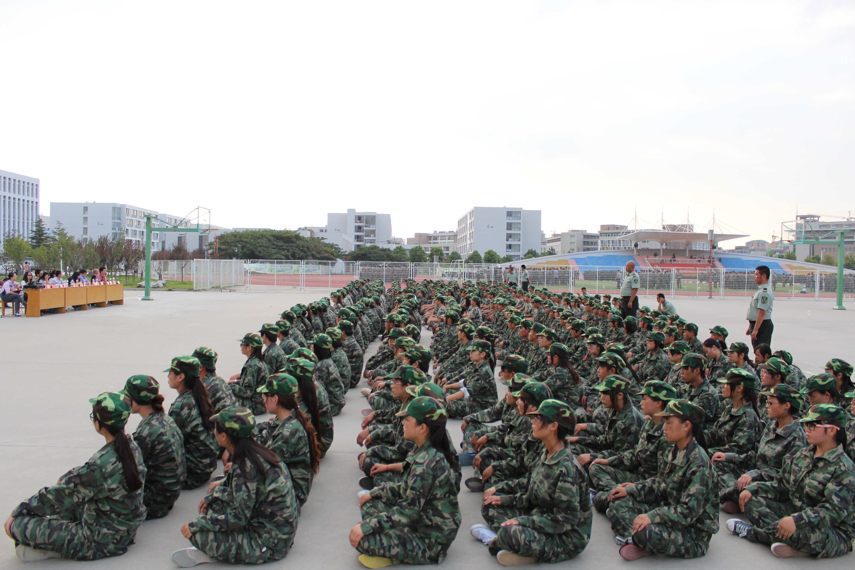 在军训会操比赛中,十三个方队在军训教官的带领下依次出场,顺利完成了停止间转法、齐步与立定、蹲下与起立、敬礼等规定动作。同学们动作整齐划一、协调有力、英姿飒爽、吼声震天,操场上不断响起热烈的掌声。经过评比,辅导员薛老师宣读了系表彰决定,对我系军训先进集体和个人、内务标兵宿舍等进行了表彰。随后学生代表进行了总结报告,回顾了两周的军训历程,为自己的迅速成长感到骄傲和自豪,决心把军训中形成的好作风、好习惯延续下去,以优异的成就报答母校,回报社会。
