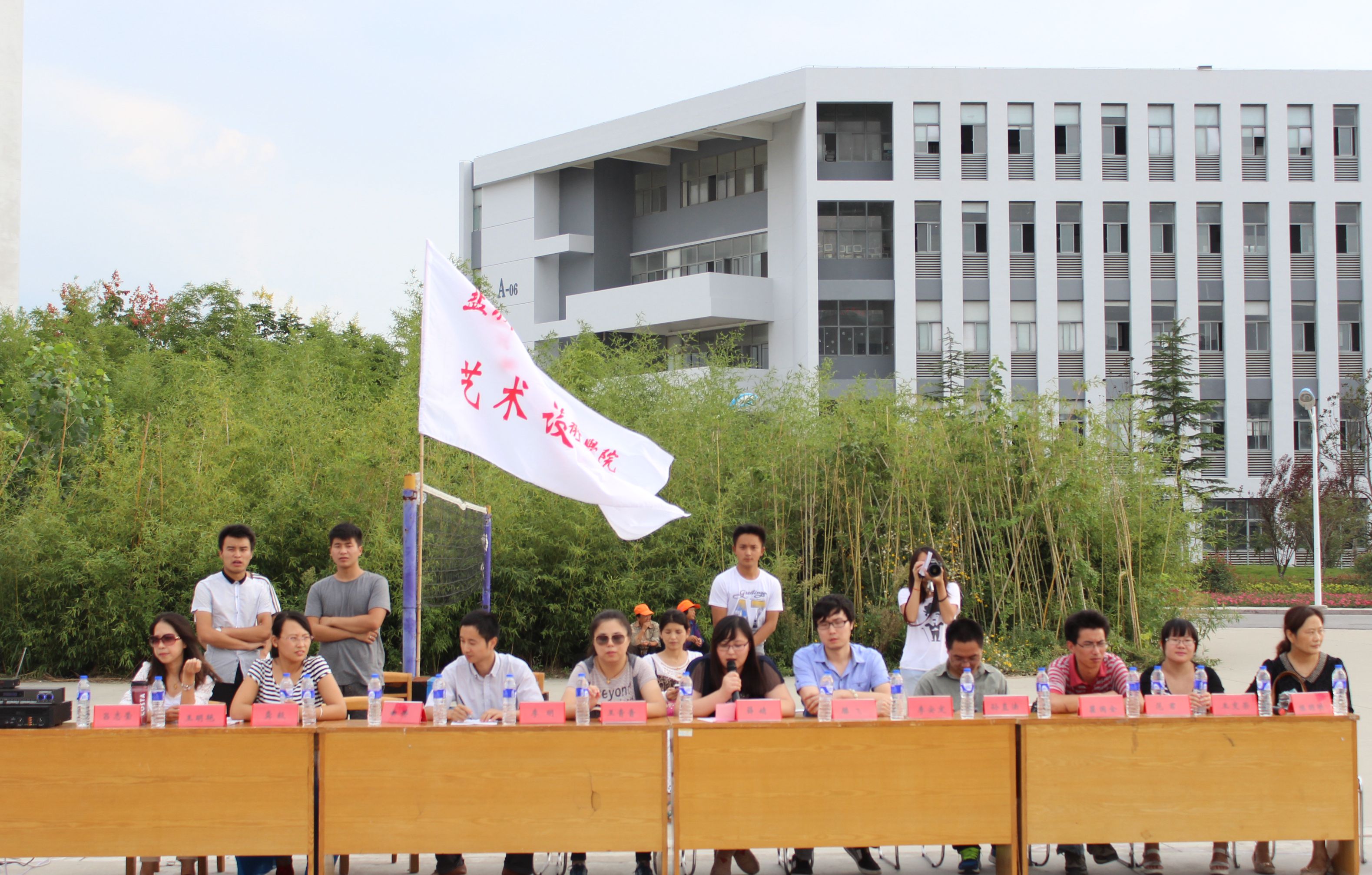 9月19日下午,艺术设计系2013级十三个班,五百多名新生在学院东篮球场举行军训会操比赛。艺术设计系副主任李明,系团总支书记滕飞,辅导员王音音、薛婧、以及大一各班班主任都出席了会操比赛,会操比赛由系辅导员薛婧主持。
