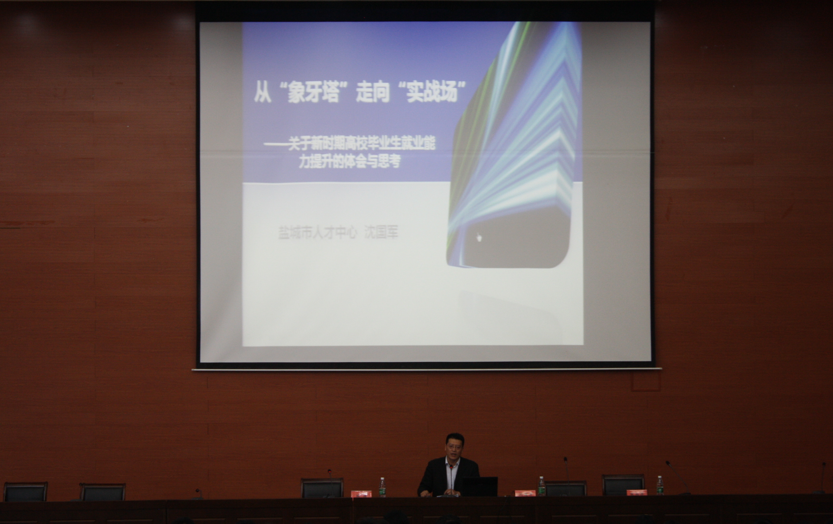 10月16日下午4点,艺术设计学院在图文中心报告厅召开了2015届毕业生就业工作启动大会。出席大会的领导有盐城市人才中心副主任沈国军、校就业与校企合作处处长陈扣洋、艺术设计学院副书记、副院长陈洁共同出席了大会,艺术设计学院毕业班班主任及2015届全体毕业生同时参会。大会由副院长陈洁主持。