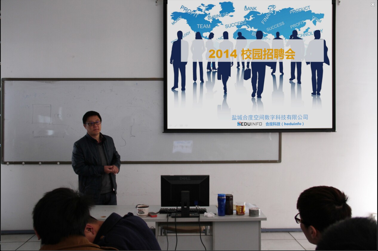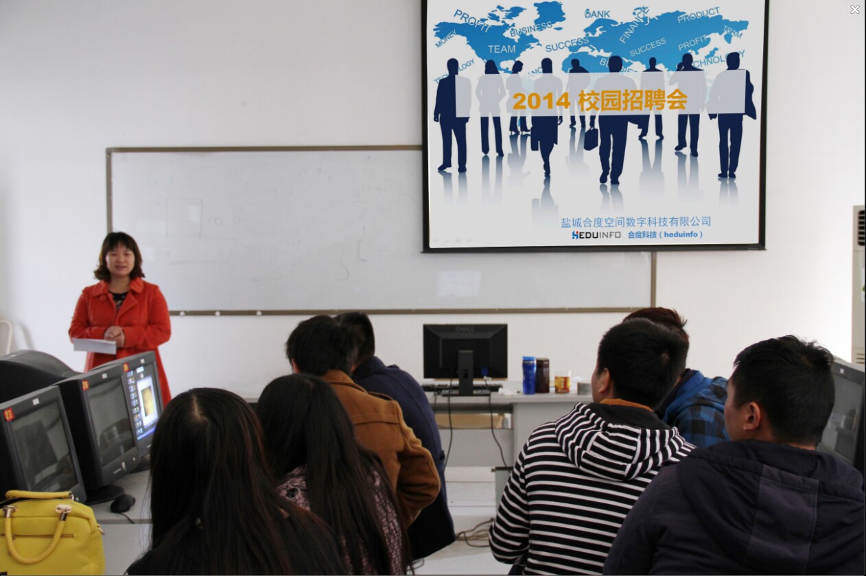 11月14日上午,盐城合度空间数字科技有限公司在艺术设计学院407教室举行专场招聘会,艺术设计学院副书记、副院长陈洁、团总支书记滕飞亲临招聘现场指导工作,慰问企业代表,深入了解学生就业情况。