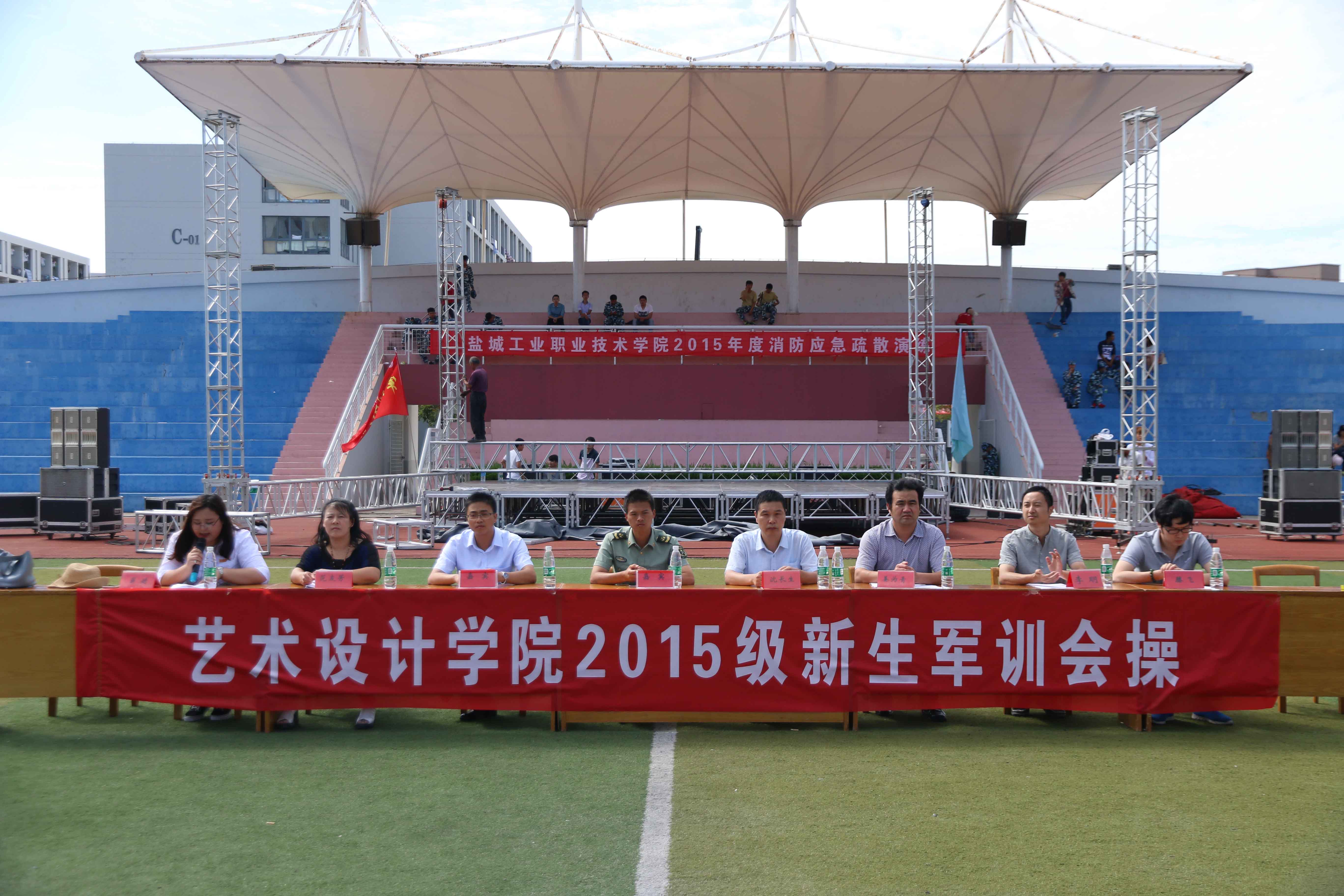 9月27日下午,艺术设计学院2015级新生军训营,242名新生在校足球场举行军训会操表演,校学工处处长沈长生、艺术设计学院党总支书记、院长姜为青;副院长范友芳;副院长李明;团总支书记滕飞以及新生班主任出席了比赛现场。会操由辅导员薛婧老师主持。