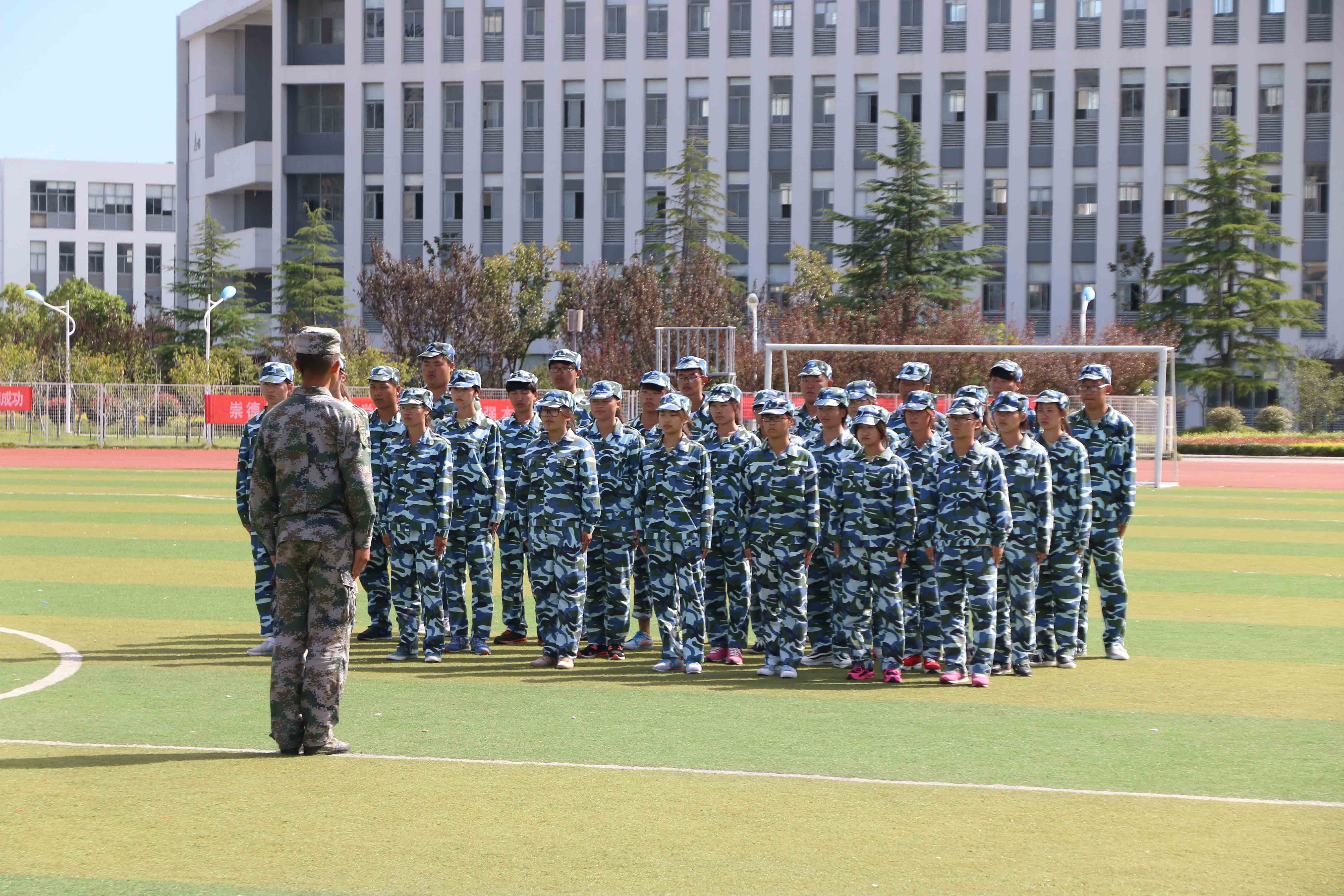 最后,院长姜为青对同学们提出了三点要求:一、把军训中养成的军人作风保持下去,带到我们今后的学习和生活中,高标准,严要求,规范自己的言行。二、珍惜这次军训经历,铭记所学到的知识和做人的道理,珍惜青春的大好时光,努力拼博、奋发进取,在学习生活中锻炼自己、塑造自己、展示自己。三、增强团队意识和集体观念,在今后的学习和生活中,互相帮助、团结友爱,共创和谐校园。