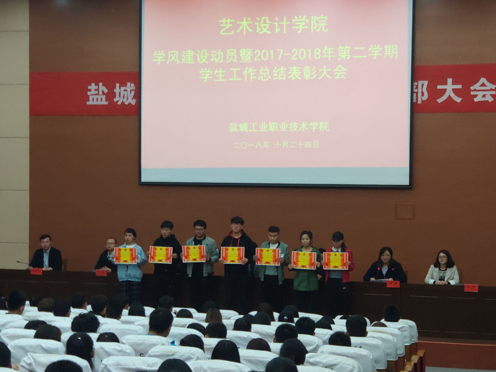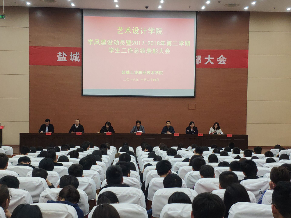 10月24日,艺术设计学院在图文信息中心学术报告厅举行学风建设动员暨2017-2018学年第二学期学生工作总结表彰大会。艺术学院党总支副书记陈扣洋,副院长李明、范友芳,辅导员丁鑫、陆维荣、杨敏出席,班主任、全体学生参加。会议由薛婧主持。