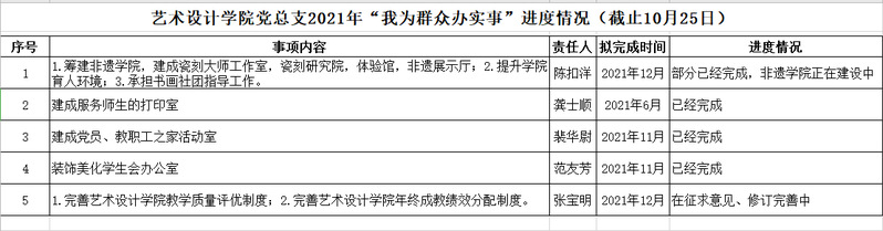 根据学校“我为群众办实事”活动要求和艺术设计学院工作方案,通过调研走访、征求意见等方式,现将我院2021年“我为群众办实事”进展情况进行公示。