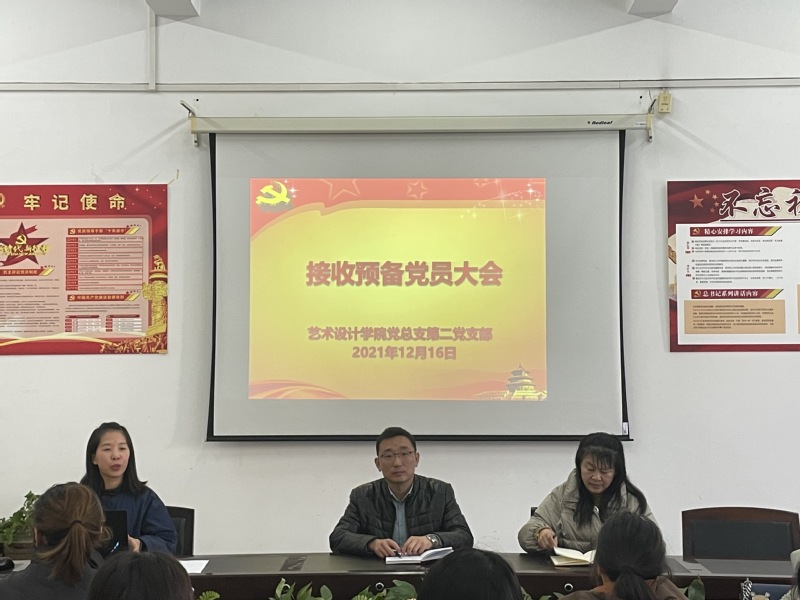 12月16日,艺术设计学院学生党支部在艺术楼310会议室召开接收预备党员支部大会。学院党总支书记裴华尉,副书记、副院长范友芳以及相关发展对象的介绍人出席会议。学院组织委员王变荣老师主持会议。