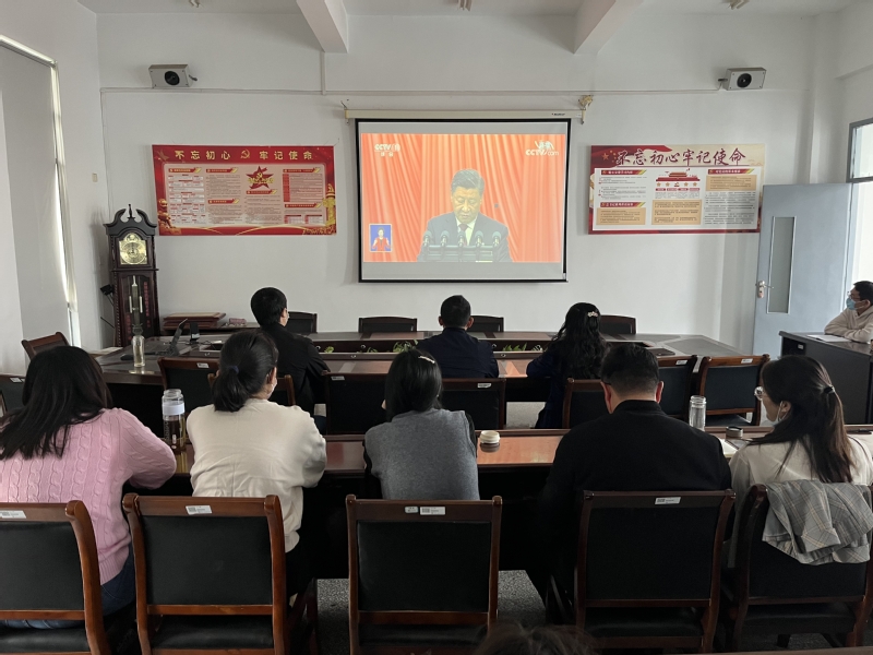在观看直播现场,师生边看边做好记录,并就报告中的新提法、新思想进行探讨和交流,切实把握报告广度和深度,深刻领会报告内涵与意义。