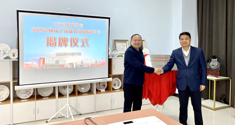 11月17日下午,学校在非遗学院展览厅举行江苏省职业教育技艺技能传承创新平台揭牌仪式。校长瞿才新,人事处处长李建国,教务处处长李桂付,人事处副处长王小俊,艺术设计学院党总支书记裴华尉,副院长张宝明,党总支委员龚士顺,平台领衔人陈银付高级工艺美术师及团队主要成员参加仪式。张宝明主持仪式。
