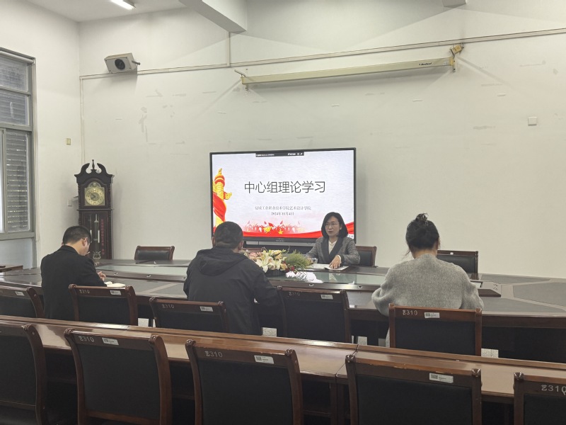 2024年11月4日,艺术设计学院党总支中心组在学院310会议室举行了理论学习会议,本次会议的专题为“深入学习领会习近平总书记关于推进中国式现代化的重要论述”。此次学习旨在深入贯彻党的二十大精神,全面理解和把握中国式现代化的深刻内涵和实践要求,为推动学院教育教学事业高质量发展提供坚实的思想保障。会议由党总支书记秦晓主持,党总支委员龚士顺、方美清、杨艳婷参加学习会。