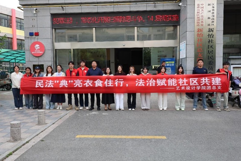 2025年5月30日,为积极响应全面推进法治社会建设号召,艺术设计学院志愿者小分队走进新河街道新怡社区,开展“民法‘典’亮社区,法治赋能共建”活动。