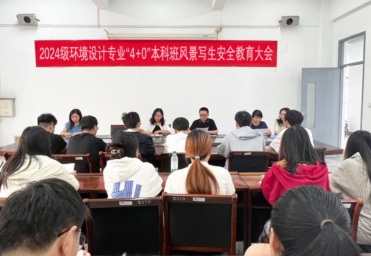 为确保外出教学实践安全有序开展,2025年10月10日上午,艺术设计学院在艺术楼310会议室组织召开2024级环境设计专业“4+0”本科班风景写生安全教育大会。学院党总支书记秦晓、副院长方美清、指导老师范友芳、孙毓、班主任徐茂洋及全体学生参会。