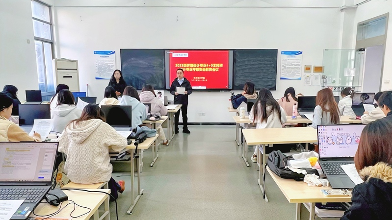 为保障设计专业考察教学实践活动安全有序推进,强化学生安全意识与纪律观念,2025年11月10日上午,艺术设计学院在艺术楼403教室组织召开2023级环境设计专业“4+0”本科班设计专业考察安全教育大会。学院党总支书记秦晓、副院长方美清、指导老师王秋涵及全体学生共同参会。